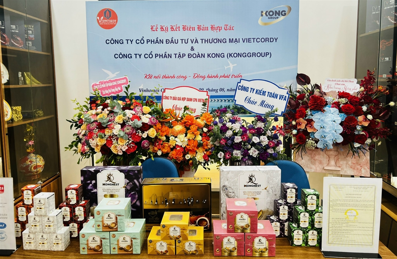 Đặc biệt, trong khuôn khổ sự kiện, VIETCORDY và KONG GROUP đã tiến hành Lễ ký kết Hợp tác kinh doanh thương mại. Theo thỏa thuận, hai bên sẽ phối hợp khai thác thế mạnh của mỗi doanh nghiệp trong việc kinh doanh sản phẩm Đông trùng hạ thảo, phân phối và phát triển thị trường, đồng thời triển khai các dự án thương mại mang tính đột phá nhằm tối ưu nguồn lực, nâng cao năng lực cạnh tranh và mở rộng hệ thống phân phối.
